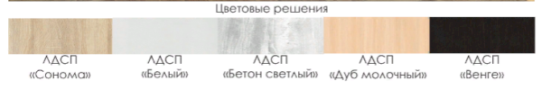 Цвета: Сонома, ЛДСП белый, Бетон светлый, Дуб молочный, Венге