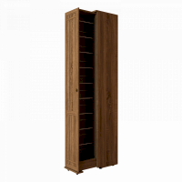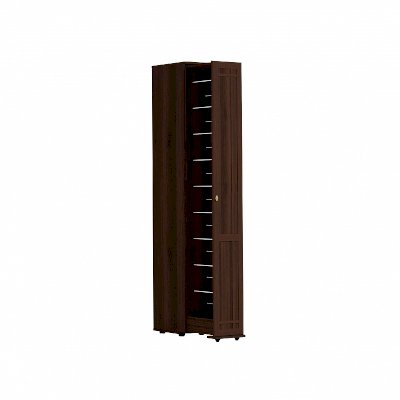 Высокая и узкая обувница - уникальное предложение на рынке мебели. Узкий (300 мм), но высокий (2125 мм) он вмещает до 18 пар обуви, а также средства по уходу за ней. Предусмотрены варианты перестановки стальных прутков-держателей для хранения маленькой детской обуви. Для этого в 2-х верхних и 2-х нижних рядах предусмотрена дополнительная присадка в центре для переноса стальных прутков ближе друг к другу. Шкаф выдвигается без усилий благодаря шариковым направляющим полного выдвижения и выкатным роликам.