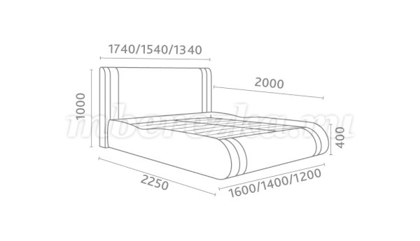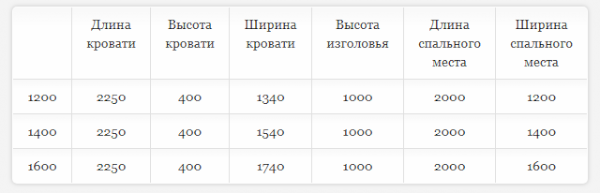 Кровать доступна в двух размерах: 1400 и 1600 мм.