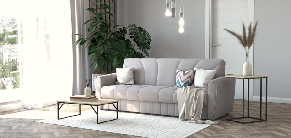 Диван Эльзас - уникальная разработка конструкторов Rivalli. Механизм трансформации клик-кляк простой и надежный позволяет не отодвигать диван от стены при трансформации.