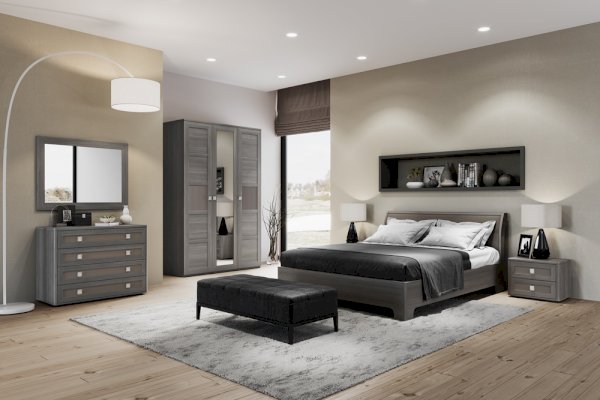 Материалы производства ЛДСП с рамочным профилем МДФ и зеркальное полотно. Цветофактурные решения представлены двумя вариантами: «ясень анкор светлый» и «лиственницы темная». Каждый из оттенков популярен и, несомненно, будет гармонично смотреться в современном интерьере спальни. Серый тон «лиственницы темной» - подарит покой и атмосферу безмятежности , а светлый «ясень анкор» создан чтоб дарить свет и тепло пространству спальни.