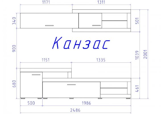 Глубина комода — 320 мм. Обратите внимание! Гостиная не универсальна по сборке, собирается только так, как показано на изображении.