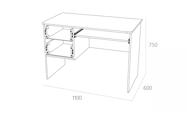 Стол для компьютера НМ 009.19-05 М2 поможет обустроить комфортный учебный уголок в детской. На рабочей поверхности модуля достаточно места для размещения стационарного компьютера, ноутбука.Удобная выдвижная полка для клавиатуры позволит сохранить место на рабочем столе. Закругленные углы столешницы делают эксплуатацию модуля безопасной для ребенка и взрослого. По окончании занятий ребенок сможет убрать книги и тетради в выдвижные ящики для поддержания порядка на рабочем месте.