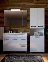 2 дверцы; 1 ящик с бельевой корзиной; 2 полки ЛДСП; ручка врезная металлическая хромированная.