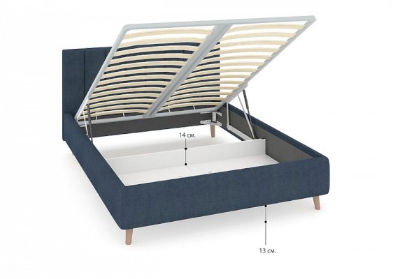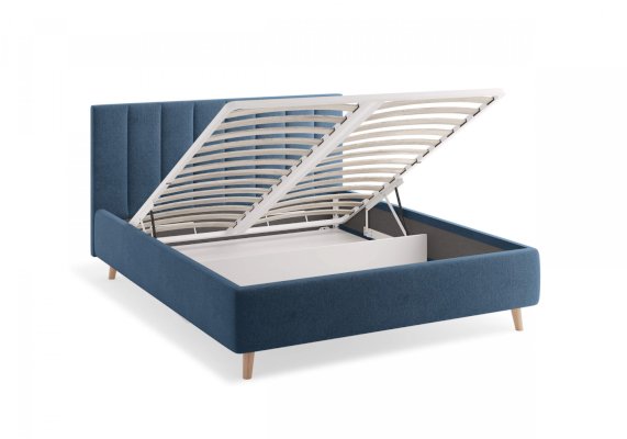 Кровать Alma подойдет для современных интерьеров спален, а благодаря деревянным ножкам впишется в стиль ретро, скандинавский или минимализм. В комплект входит металлическое основание с деревянными ламелиями, а при желании кровать Alma может быть укомплектована подъемным механизмом с бельевым ящиком.