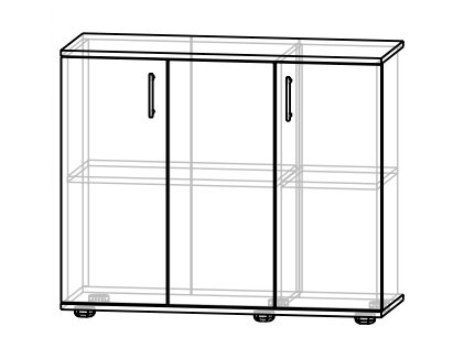 Тумба с тремя распашными дверками и одной полкой внутри. Идеальна для хранения любых вещей - от крупных книг до папок с документами.
