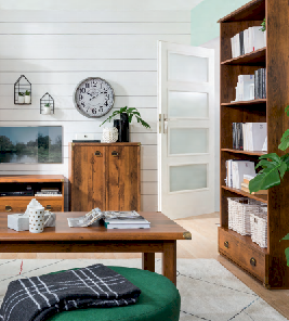 Оригинальный дизайн фасада, точно повторяющий текстуру отполированного дерева отлично впишется в современный интерьер. Дополняет общую композицию необыкновенная форма ручек и закругленные металлические края элементов мебели. В коллекцию Indiana входит большой ассортимент элементов мебели, который поможет создать интересный интерьер в комнате.
