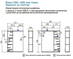 Зеркало Diana 600 левое со спотом