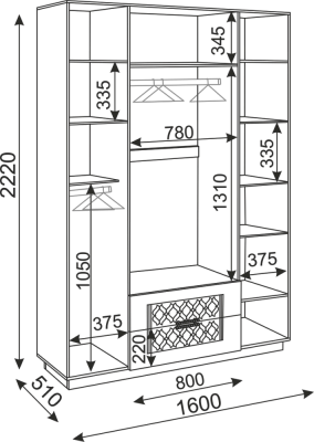 Наполнение шкафа выдвижные ящики / зеркало / штанга