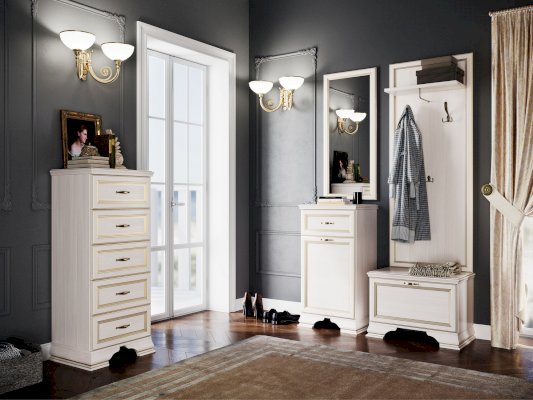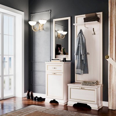 Вешалка «Сиена» гармонично сочетается с тумбой для обуви, и зеркалом. Благодаря универсальности коллекции, вы можете установить в прихожую высокий комод или шкаф.