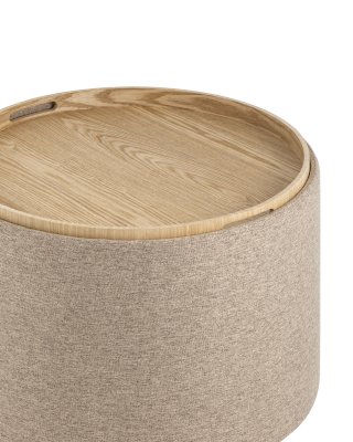 Мягкий пуф с ящиком станет незаменимым украшением интерьера. Он не только удобный, но и функциональный. Благодаря двухсторонней крышке, пуф можно трансформировать в журнальный столик. Столешница выполнена из светлого дерева с бортиками по краям и вырезными ручками для удобства, и безопасности при использовании. Крышка пуфика полностью съемная и при необходимости её можно использовать как поднос. Полезное дополнение - ящик для хранения различных мелочей, внутри обит тканью. Компактный и вместительный, такой пуфик наполнит пространство особым уютом и теплом. Подойдет для любого интерьера - как в классическом стиле, так и в современном.