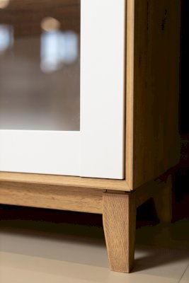 • За сборными распашными дверями со стеклом две стационарные горизонтальные перегородки и одна съемная стеклополка.