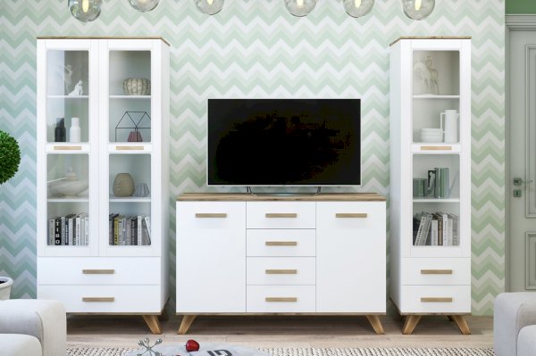 Покупка комодино серии «Вега Скандинавия» — это возможность купить комод в гостиную или спальню при этом выгодно сэкономить, так как данный предмет сочетает в себе и тумбу под телевизор и комод.