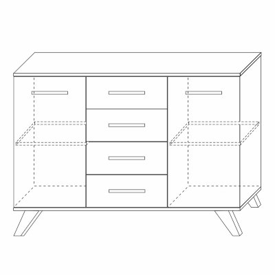 Комодино серии «Вега Скандинавия» — это стильный большой комод для спальни или гостиной. Вы можете установить на него телевизор или украсить статуэтками, вазами или рамочками с любимыми фото. Удобство хранения в закрытом виде обеспечивают 4 выдвижных ящика, а также большие отделы с распашными дверцами.