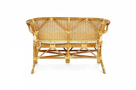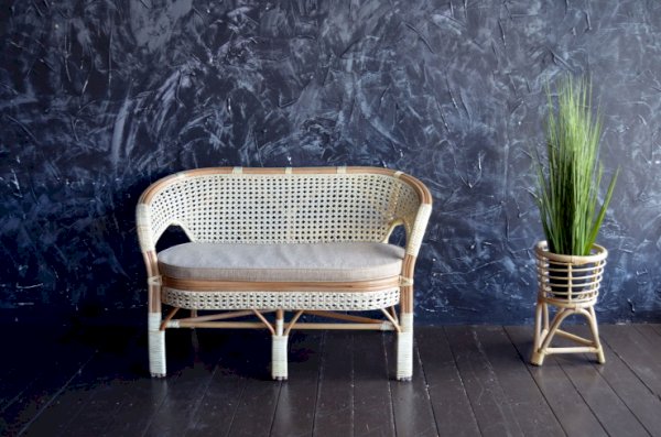 Двухместный диван из ротанга с подушкой.