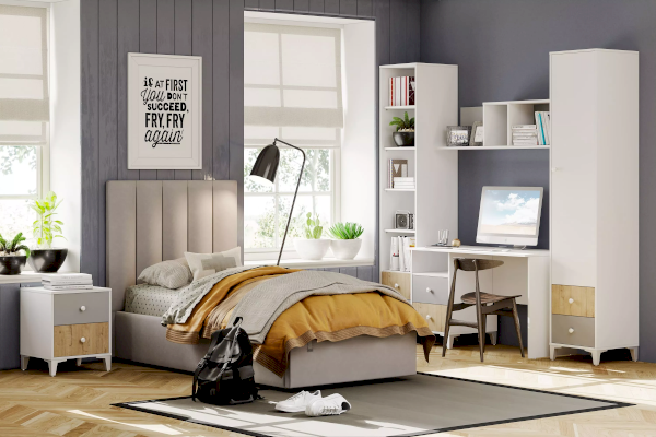 Полка легко впишется в интерьер любого типа благодаря лаконичной форме и универсальному дизайну. Практичная навесная модель для молодежной комнаты, спальни или детской оборудована тремя просторными нишами, удобными для книг, предметов декора и разнообразных бытовых мелочей. Полка выполнена в сочетании белого и серых цветов и отлично смотрится с другими моделями коллекции «Морти».