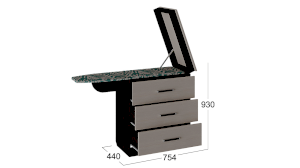 Комод выглядит компактно, он имеет 3 вместительных выдвижных ящика, которые позволят использовать 100% внутреннего пространства. Главное преимущество комода – встроенная гладильная доска, она находится внутри откидной крышки, благодаря чему комод выглядит компактно и зрительно не загромождает комнату.
