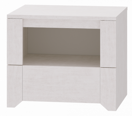 Прикроватная тумбочка с открытым ящиком для хранения мелочей под рукой.
