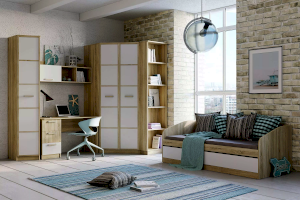 Полка НМ 011.38-01 М1 органично дополнит рабочее место в детской. Закрытая секция модуля подойдет для хранения книг. Газлифты максимально высоко поднимают фасад вверх, обеспечивая большую площадь обзора содержимого. Предметы декора будут хорошо смотреться в открытых секциях полки.