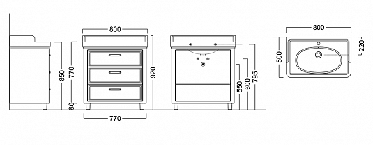 Тумба-умывальник Pompei 80, 3 ящика