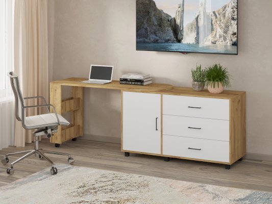 Стол раздвижной на колесиках, можно использовать как комод, можно использовать как полноценное рабочее место.