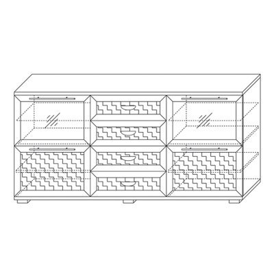 При меблировке спальни в современном стиле обратите внимание на большой функциональный комод в коллекции «Парма нео». Этот модуль наделен отличной системой хранения, в нем присутствуют выдвижные ящики, отделения с дверками. Благодаря наличию стеклодверей изделие смотрится более легким и имеется возможность красиво расставить фужеры или другую красивую посуду на стеклополках. Четыре выдвижных ящика помогут аккуратно хранить белье, аксессуары и другие предметы обихода.