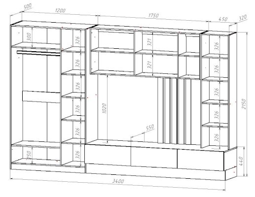 Размер ниши для ТВ: (ШхВ) 1750х1020 мм