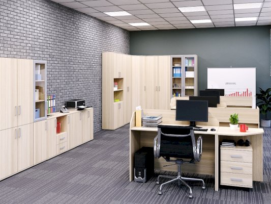 Закрытый  шкаф для документов. За дверцами спрятаны вместительные полки.