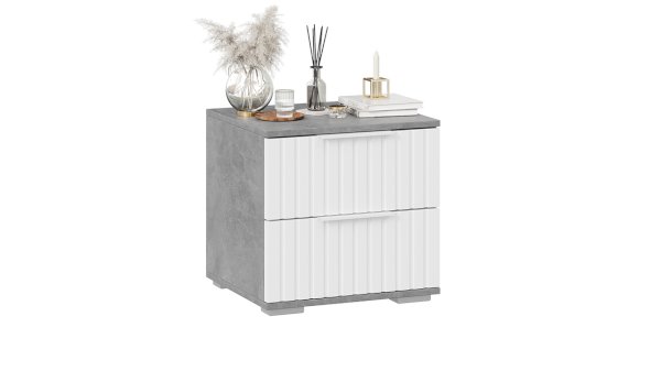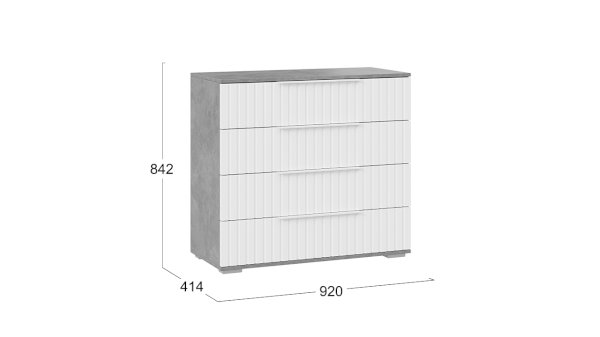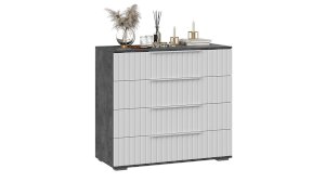 Декор. Мебель для спальни непременно должна быть изготовлена из надёжных материалов, именно такой и является наша новинка. Каркас выполнен из ЛДСП с имитацией бетонной поверхности «Ателье светлый», а фасады МДФ облицованы пленкой ПВХ «Белый матовый» и декорированы вертикальной фрезеровкой. Визуальный объем и глубину рисунка «Ателье» подчеркивает суперматовая структура, которая отлично сочетается с однотонными декорами, а белый цвет в интерьере является наиболее популярным, ведь он расширяет пространство, добавляет воздуха и свежести.