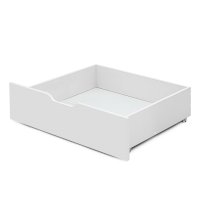Ящик не является частью кровати, а представляет собой отдельную конструкцию. Выдвигается наш ящик не на направляющих, как встроенные, а на собственных прорезиненных колесиках. Это позволяет выдвигать его на свободное расстояние от кровати, а также выдерживать больший вес наполнения. Под кровать Denvas умещается 2 ящика.
