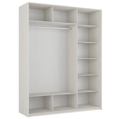 Шкаф-купе 3-х дверный Прайм Белое стекло/Зеркало/Белое стекло 1800х2300х570 мм Ясень Анкор Светлый