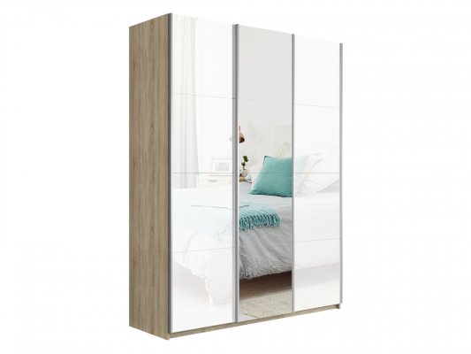 Шкаф-купе 3-х дверный Прайм Белое стекло/Зеркало/Белое стекло 1800х2300х570 мм Сонома