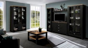 Этот шкаф взял в себя все самое лучшее от модуля 37.05 и 37.04. Витражный фасад, выдвижной ящик – такие же, как в комбинированном шкафу 37.05, а вот по размерам он полностью повторяет пенал 37.04. Таким образом мы получаем стройный, изящный и компактный шкаф-витрину. Комбинированным его называют не зря, так как у него есть и полки, и выдвижной ящик. Он хорошо смотрится как отдельно, так и вместе со своим братом-близнецом – пеналом. Внутри находятся четыре полки из ЛДСП, каждая из которых выдерживает вес до 5 кг. Внизу расположен выдвижной ящик – миниатюрный, но вместительный.
