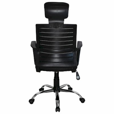 Высокая сетчатая спинка и подголовник, выраженная поддержка поясницы, прочные пластиковые подлокотники, хромированное пятилучие гарантируют комфортное долгосрочное использование.